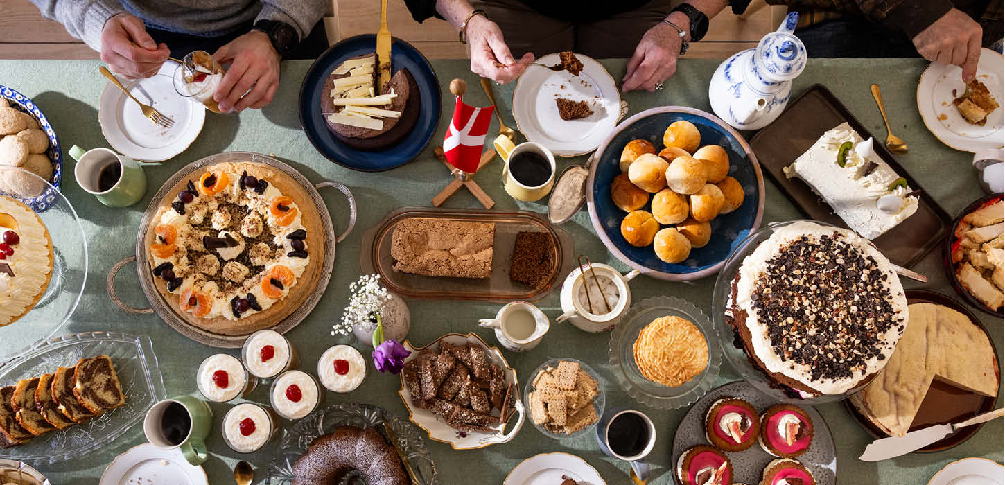 Willkommen an der südjütländischen Kaffeetafel, die sich in der Region zu einer echten Institution entwickelt hat. Der Name „Kaffeetafel” ist möglicherweise missverständlich – handelt es sich doch eher um den Kuchen als den Kaffee, der das Bild bestimmt.