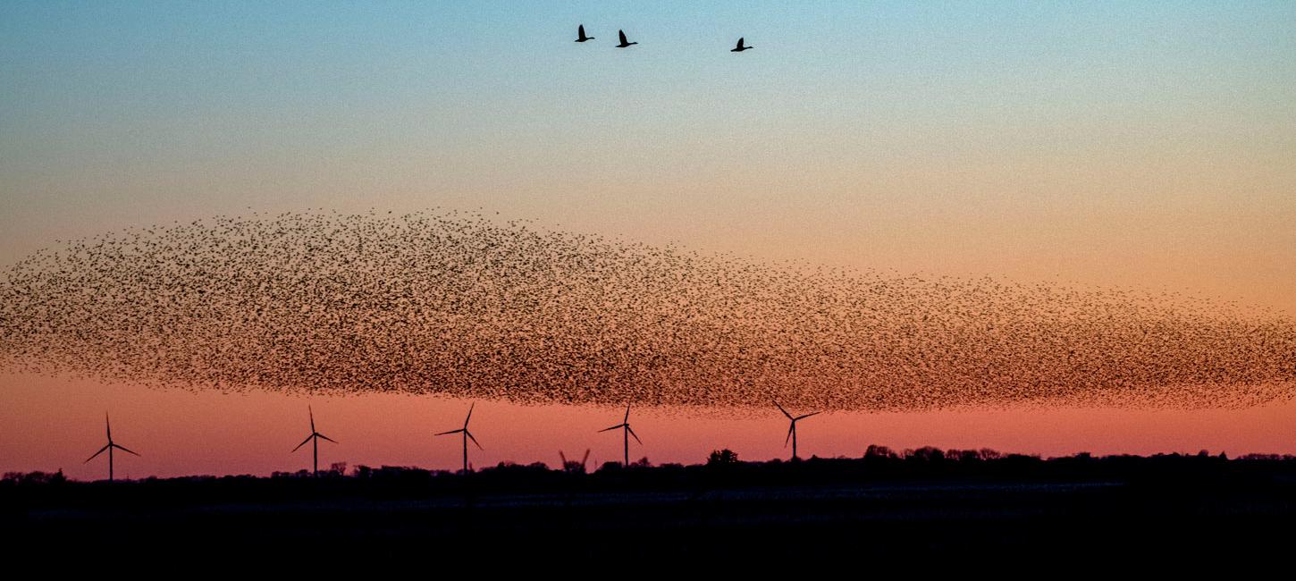 Kurz bevor die Stare für die Nacht auf der Erde landen, bilden die großen Schwärme faszinierende Muster am Himmel, die beinahe die Sonne verdunkeln. Daher der Name "Sort Sol" oder "Schwarze Sonne".